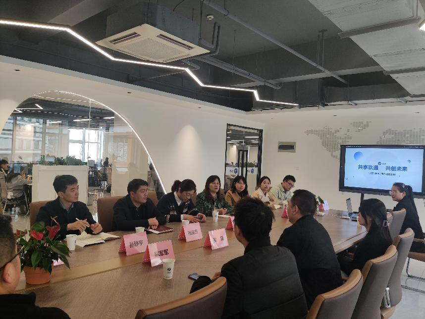公司負責人對我校一行到訪表示歡迎,并陪同參觀了公司各辦公場所、直播場所等。隨后,雙方在會議室開展了座談交流,負責人黃躍介紹了公司產品的發展史、目前運營模式以及未來發展走向、用人缺口情況等。