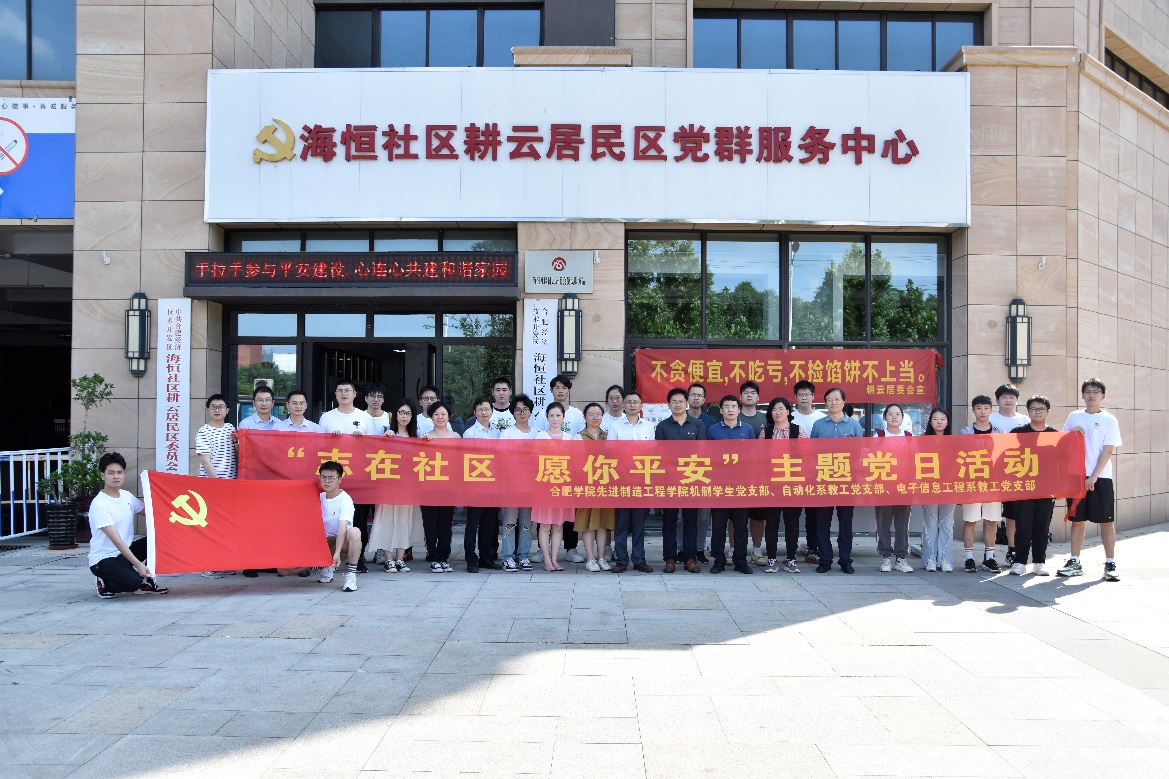 為深入開展學習貫徹習近平新時代中國特色社會主義思想主題教育,202369日,合肥學院機制學生黨支部、自動化系教工黨支部、電子信息工程系教工黨支部共30余名師生黨員前往合肥市海恒社區耕云居委會開展了“志在社區 愿你平安”主題黨日活動,引導社區居民提高消防安全和電詐防范意識,保障社區居民的切身利益。