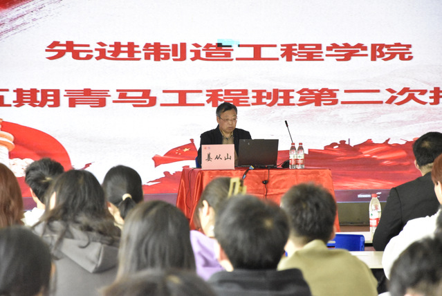深化學員們對中國共產黨歷史的了解,明確中共一大的重要意義,使學員們更加明確自身肩負的歷史使命2024年3月29日中午12點30分,先進制造工程學院第五期青馬工程培訓班邀請到榮獲全國無償獻血奉獻獎終身榮譽獎、全國志愿服務終身榮譽獎、安徽省教科文衛體系統師德先進個人合肥好人等榮譽稱號的姜從山老師為青馬班的學員們進行第二次理論授課。本次授課的主題是“中共一大及其代表的最終歸宿”地點在大學生活動中心一。