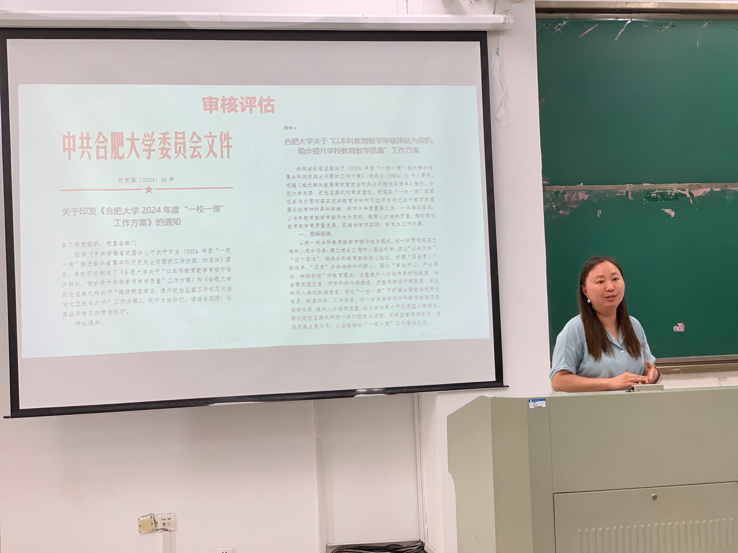 會議開始,學院教學辦主任、審核評估工作組秘書石朝毅解讀學校《關于開展2023-2024(2)教學材料、2024屆畢業設計(論文)專項檢查工作的通知》和學院《關于2024暑期審核評估開展教學材料檢查整改的通知》要求與安排。學院督導組主任劉偉針對學院全覆蓋檢查工作的檢查范圍、檢查內容與注意事項進行詳細說明。會議中,學院黨委副書記、院長胡學友傳達學校審核評估工作領導組會議精神,并介紹我院審核評估工作總體推進情況,布置學院審核評估工作后續安排。會議最后,學院黨委書記杜娟解讀了《合肥大學關于“以本科教育教學審核評估為契機,穩步提升學校教育教學質量”工作方案》和《合肥大學紀檢監察機構關于“推進制度建設,提升紀檢監察工作規范化法治化正規化水平”工作方案》,并強調審核評估工作的重要性,要求全院高度重視、把握重點、有序推進,務必將審核評估各項工作做實做細。