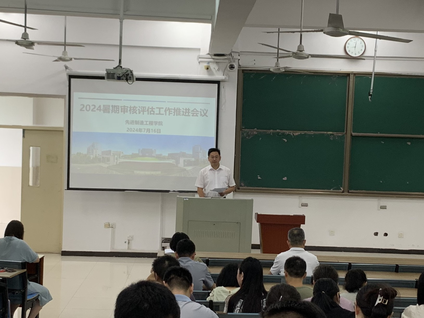 為了迎接本科教育教學審核評估,進一步提升學院主要教學環節質量和教學材料規范性,根據學校《關于開展2023-2024(2)教學材料、2024屆畢業設計(論文)專項檢查工作的通知》精神,先進制造工程學院成立了教學材料檢查工作組,對相關工作進行統籌安排與有序推進,并于2024716日在383階梯教室組織召開了2024年暑期審核評估工作推進會,會議由學院副院長胡國華主持,學院黨政班子成員及全體教師參會。