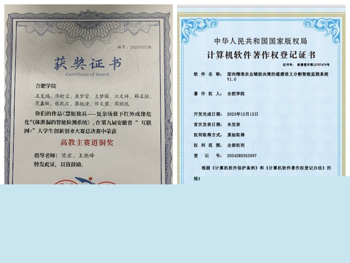 她所在團隊憑借作品“復雜場景下紅外成像危化氣體泄漏智能檢測系統”成功獲批安徽省2023年度新時代育人質量工程項目(研究生教育)。該系統主要利用高分辨率紅外攝像實時監測氣體泄漏過程,通過定位、氣體類型、判斷和自動報警等多種方式,精確地識別和定位危險氣體泄漏源,在第一時間發出警報通知相關人員處理,可避免更多的損失和事故,提高工廠的生產效率和安全指數。
