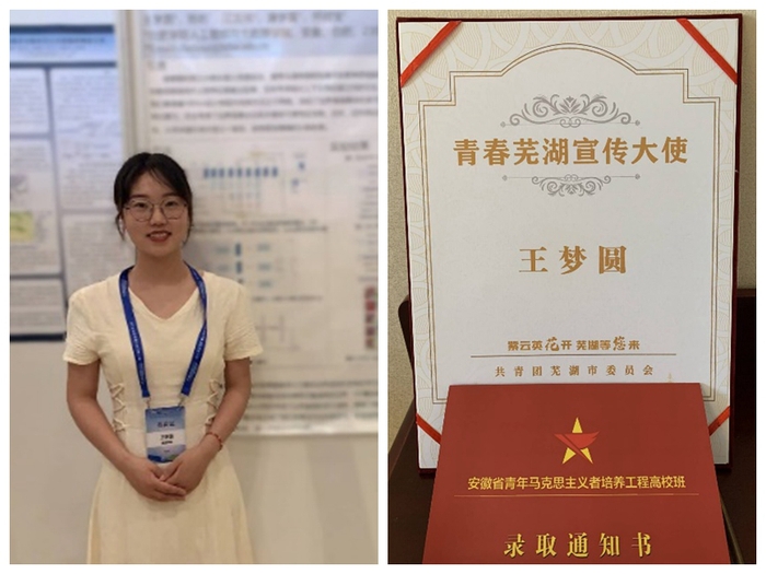 作為校研究生會主席,她努力發揮研究生會聯系學生的橋梁紐帶作用,組織了一系列有意義的活動,如羽毛球比賽、主題團日活動和學術講座等,豐富了廣大研究生的校園生活。2023年9月,王夢圓作為我校學生代表參加安徽省“青馬工程”高校班,并獲得了“青春蕪湖宣傳大使”的榮譽稱號。她表示,未來將會繼續用行動踐行志愿服務精神,在學思踐悟中牢記初心使命,在信照篤行中不斷修煉自我,在知行合一中主動擔當作為,做好新時代的接班人,以務實為底色,在腳踏實地中追尋初心!