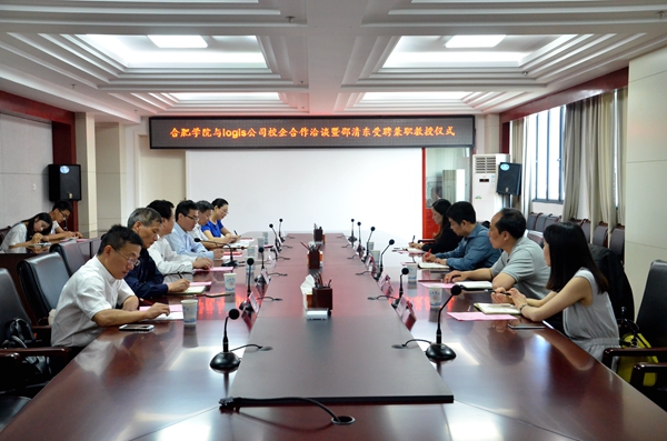 On June 7, Chair of the University Council, Cai Jingmin, welcomed Shao Qingdong, Chair of Beijing Logis Sci Tech Development Co., Ltd., and his group members. Shao and Cai had a talk over the project of co-building a logistics lab in Management Department, HFU. The staff concerned participated in the discussion.