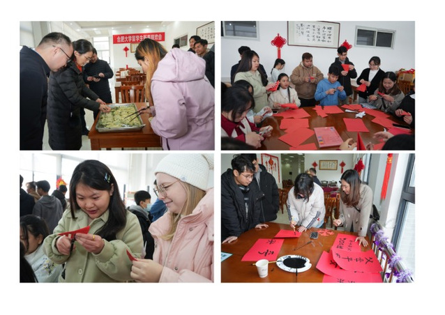 Students from Cambodia, Laos, Nepal and Russia, made Jiaozi (dumplings), wrote blessing character “Fu” in calligraphy and made paper-cutting together with teachers to deliver New Year wishes, which turned the dining hall into a place full of great joy.