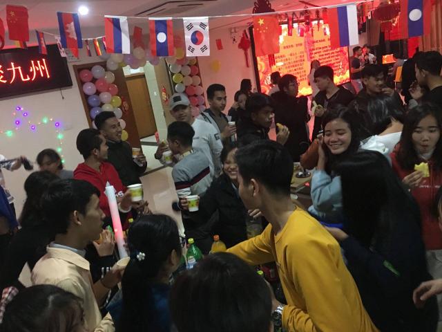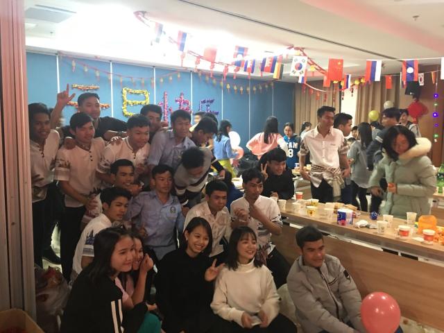 此次元旦晚會的主題是“似水留’年,歡聚九洲”,希望每一位留學生都能夠相親相愛,身在異國也能享受到文化多元的快樂。在元旦晚會的現場,有來自韓國、老撾、柬埔寨和尼泊爾的留學生,大家雖然國籍不同,但心的距離卻無比之近。在這場晚會中,每個人的臉上都始終洋溢著幸福的笑容。
