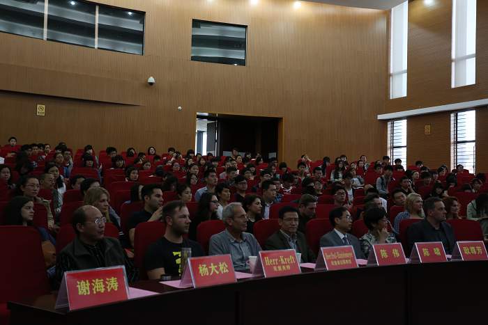 謝海濤在致辭中對此次活動的行程進行了介紹,本次WORKSHOP項目將由三國四方共同完成,分別是德國漢諾威應用科學大學,韓國韓巴大學,中國臺灣銘傳大學以及安徽省本科高校聯盟的各兄弟院校。中德學生分為10個組,共同完成四個設計專題中的兩個,每組的中德學生在活動期間需要進行交流和討論,共同完成項目陳述和項目設計。同時,他希望能夠有越來越多的學校加入進來,讓更多的學生都能夠參與國際交流活動。