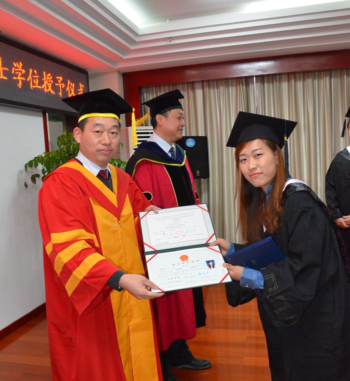 張文兵院長為畢業生授予學位證書 與會師生合影