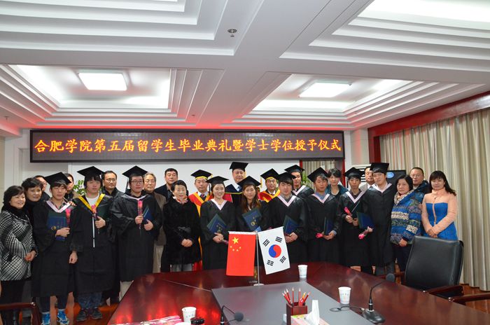 本次畢業的10位留學生全部來自漢拿大學,蔡敬民在總結講話中說,漢拿大學坐落在美麗的濟州島,是一所不斷創新,不斷改革,不斷發展的學校,學校校長室用漢字寫的“創新”二字讓他印象深刻。他指出,合肥學院作為應用型本科高校,辦學特色鮮明,很多舉措在全國同類高校中具有開創性、前瞻性。合肥學院與韓國高校的合作辦學也得到了韓國政府的高度關注,韓國兩任駐華大使金夏中和李揆亨先后訪問我校,我院韓籍客座教授趙誠惠是第一位被授予中國政府“友誼獎”的韓國公民。蔡敬民還表示,合肥學院將進一步加強與韓國高校的合作,拓展合作領域,創新合作模式,為中韓文化、經濟交流培養更多的人才。最后,蔡敬民充滿深情的對獲得學位的留學生說,畢業不等于離校,希望各位同學在工作忙碌之余不忘常回母校看看,重拾在母校學習生活的美好回憶。