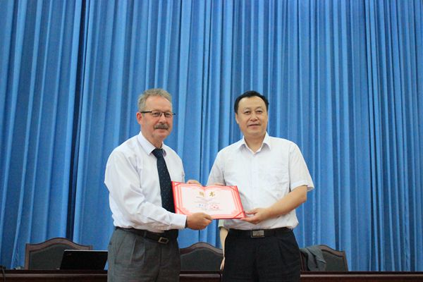 蔡敬民書記為奧托?凱爾斯滕教授頒發(fā)客座教授證書