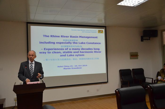 M?格拉姆鮑夫博士在報告中以康斯坦茨湖為例講述萊茵河流域的管理,他介紹了河流的功能和作用、河流演變流程、康斯坦茨湖的利用、面臨的壓力及湖泊污染的后果。他還例舉了歐洲與水有關的法律條文、國際組織以及德國萊茵河流域的團體組織,強調水權對法律和標準的執行與開發有重要意義。除此之外,他展示了萊茵河2020主要成果,并提出了微量污染物、魚類污染、氣候變化影響三個新的話題,希望引起大眾的關注。最后,他強調,即使發生災難性的事件也要保持積極的態度。對于國家和區域的水管理,只有自身強健,才能處處強健。任何一部分功能的發揮都是基于系統內部的完美配合。