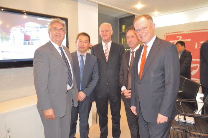 張文兵校長與來華訪問的下薩克森州代表團部分代表合影(右一:州長史提芬?威爾先生)