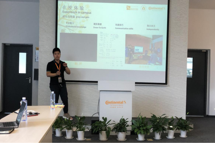 6位同學依次分享了在埃姆登應用科學大學的交流學習情況以及在德國漢諾威大陸集團輪胎事業部總部的企業實訓情況,并結合自身經歷反饋了完成整個大陸班項目的體驗。其中,英語能力較為突出的3位同學使用流利的英語匯報,展示了大陸班學子積極向上、努力好學的精神風貌。