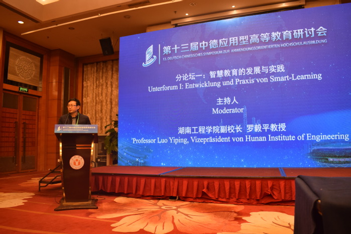 第一分論壇主題為智慧教育的發(fā)展與實踐,由湖南工程學(xué)院副校長羅毅平教授擔(dān)任主持人。北京大學(xué)教授陳洪捷,薩克森職業(yè)學(xué)院校長、德累斯頓學(xué)院院長安德烈亞斯·漢塞爾教授,合肥學(xué)院副校長陳秀,奧斯納布呂克應(yīng)用科學(xué)大學(xué)教授亨德里克·拉克勒進(jìn)行專題報告。