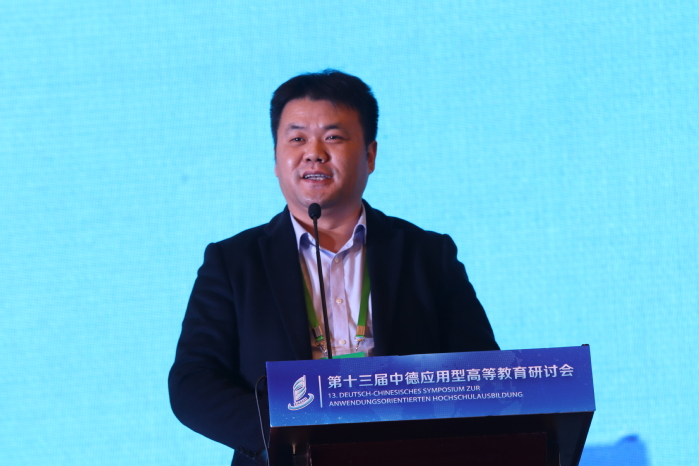 第二分論壇主題為產(chǎn)教融合與應(yīng)用型人才培養(yǎng),由滁州學(xué)院副校長李慶宏教授主持。奧斯納布呂克應(yīng)用科學(xué)大學(xué)米夏埃爾·舒勒教授、常熟理工學(xué)院顧永安教授、奧斯納布呂克應(yīng)用科學(xué)大學(xué)托馬斯·霍夫曼教授和中國電科集團南京五十五所技術(shù)開發(fā)有限公司校企合作中心總經(jīng)理、山東省產(chǎn)業(yè)教授許建軍分別進(jìn)行專題報告。