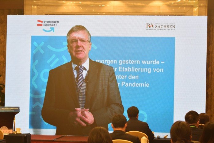安德烈亞斯·漢塞爾以《明天如何成為昨天:關(guān)于疫情下建立在線學(xué)習(xí)的報告》為題作了報告。他從薩克森州涉及高校的戰(zhàn)略性文件、高等教育的目標(biāo)設(shè)置等方面介紹了疫情前德國高等教育的情況和德國應(yīng)用型大學(xué)在疫情期間線上教學(xué)的研究與實踐,并針對在實踐中遇到的問題提出了許多有建設(shè)性的意見和具體的舉措。他認(rèn)為,線下教學(xué)、輔以線上,將是未來發(fā)展的方向。