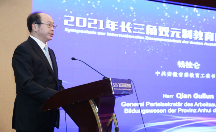 中共安徽省委教育工委書記錢桂侖在致辭中指出,“雙元制”作為一種校企合作、產(chǎn)教融合的教學(xué)模式,其實(shí)施離不開企業(yè)的參與。企業(yè)促進(jìn)了深度培養(yǎng)方案、課程體系、教學(xué)內(nèi)容及教學(xué)方式的改革創(chuàng)新,全流程參與應(yīng)用型本科人才高質(zhì)量培養(yǎng),為培養(yǎng)符合企業(yè)和行業(yè)需要的應(yīng)用技術(shù)人才發(fā)揮了積極作用。他希望雙方共同努力,推進(jìn)產(chǎn)教融合、校企合作,促進(jìn)“雙元制”在安徽、在長三角、在中國生根結(jié)果,努力培養(yǎng)更多高素質(zhì)應(yīng)用型技術(shù)技能人才,為全面建設(shè)社會(huì)主義現(xiàn)代化國家提供有力的人才和技能支撐。