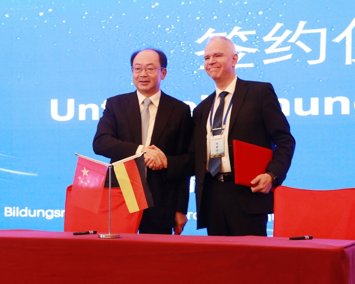 大會(huì)舉行了簽約儀式,錢桂侖和喬治·施泰德作為雙方代表簽訂了合作協(xié)議。未來雙方將圍繞“教學(xué)方案研討”、“提升教師教學(xué)以及實(shí)踐能力”、“引入以實(shí)踐為導(dǎo)向教學(xué)理念”為主題的師資培訓(xùn),建立建設(shè)能力培訓(xùn)中心,建立教學(xué)質(zhì)量管理體系等方面開展合作,進(jìn)一步增進(jìn)中德兩國在教育領(lǐng)域的交流與友誼,促進(jìn)安徽省職業(yè)教育發(fā)展。