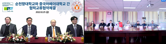2022年2月25日,為深入推進(jìn)學(xué)校對(duì)韓教育合作,引進(jìn)國(guó)外優(yōu)質(zhì)教育資源提升應(yīng)用型人才培養(yǎng)水平,我校與韓國(guó)順天鄉(xiāng)大學(xué)舉行視頻會(huì)議,商談深入合作內(nèi)容和簽訂友好合作協(xié)議。校長(zhǎng)吳春梅、人工智能與大數(shù)據(jù)學(xué)院院長(zhǎng)檀明、國(guó)際交流合作處處長(zhǎng)張慧、副處長(zhǎng)孔春華、人工智能與大數(shù)據(jù)學(xué)院大數(shù)據(jù)與信息工程系主任許強(qiáng)、外國(guó)語(yǔ)學(xué)院東語(yǔ)系主任周巖、國(guó)際交流合作處辦公室主任沈萍和順天鄉(xiāng)大學(xué)校長(zhǎng)金承禹、副校長(zhǎng)全倉(cāng)完、國(guó)際教育交流處長(zhǎng)柳炳旭、計(jì)算機(jī)軟件工程系金碩勳等參加本次視頻會(huì)議。