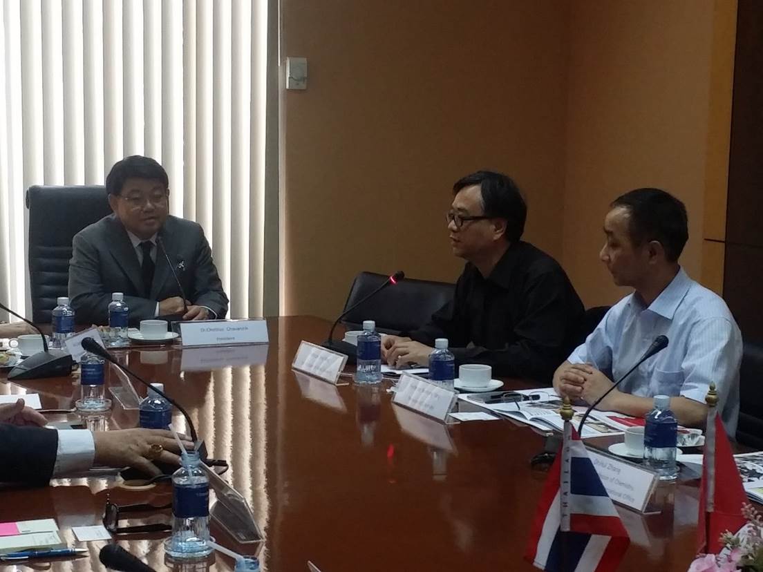 訪問孔敬大學期間,丁明教授并作為大會副主席出席在孔敬大學舉辦的第十屆多功能材料與應用國際會議(ICMMA2016)、主持多功能材料應用分論壇,代表團成員在大會做主題報告和海報科研成果報告。多功能材料與應用國際會議(ICMMA)是由中、韓、日、泰、印等多所高校發起的國際會議,我校是發起和主辦單位之一,該會議于2011年在我校成功舉辦,迄今已經在多個國家成功舉辦十屆,是多功能材料領域具有一定影響力的國際性學術會議。本次會議于2016年12月1日至3日舉辦,合肥學院是協辦單位之一。大會共有11個國家、40余所大學研究所的100多位專家學者參加,其中包含來自東盟4個國家的10余所大學。參加本次大會有助于提高合肥學院在多功能材料領域的學術水平和影響力,幫助提高合肥學院在東盟國家高校的知名度。在會議期間,丁明與孔敬大學國際事務副校長Nawarat Wara-aswaati Charoen教授舉行會談并洽談兩校合作事宜。孔敬大學是泰國排名前5名的的公立大學,成立于1964年。孔敬大學的校園占地面積1萬多畝,在校學生近4萬人,是泰國東北部最大最權威的教育和科研領軍機構,在2006-2007年度被評為泰國最頂尖的大學。Charoen教授高度贊賞合肥學院的對外合作,期望兩校可以盡快開展合作。受丁明教授的邀請,孔敬大學計劃在2017年派出代表團訪問我校。