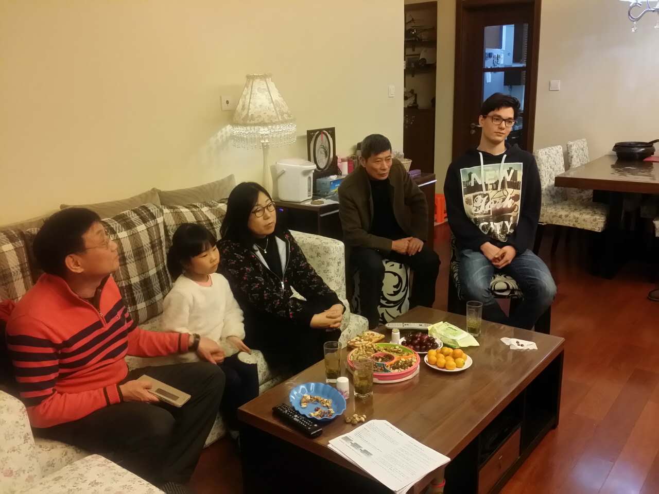 2016年我校迎來第一批俄羅斯留學生入學,來自莫斯科的留學生亞歷山大在學期結束后,沒有和其他俄羅斯學生一起回家,選擇留在中國,體驗最具有中國味的春節。大年除夕夜,國際交流合作處張慧副處長邀請亞歷山大和留在學校的韓國外教金燦慶教授夫婦到家里過年,感受“中國春節”氣息。亞歷山大、金教授夫婦和張處長的家人們共進團圓飯并一起觀看了春節聯歡晚會,一同喜迎中國農歷“雞年”的到來,暢談新年的計劃和夢想,其樂融融。