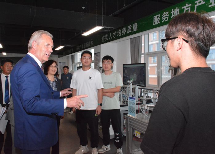 武爾夫一行還參觀了大眾學院校企實訓平臺,在多模態設備健康評估實驗室、智能制造系統集成技術應用及創新中心、數字孿生技術及工程應用中心調研了學科建設、模塊化課程、實訓教學等情況,高度肯定了我校“地方性、應用型、國際化”的辦學定位。