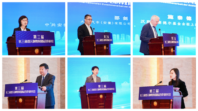 受任清華副省長委托,安徽省人民政府辦公廳副主任張紅君到會致辭。大眾汽車(安徽)有限公司副總裁邵劍、德國漢斯·賽德爾基金會駐上海首席代表喬治·施泰德分別到會致辭,安徽省教育廳二級巡視員朱乃韜、江蘇省教育廳副廳長曹玉梅、德國海外商會聯盟大中華區高級經理戴秋芳、安徽省汽車行業協會會長石琴做主旨報告,安徽省教育廳副廳長徐靜平主持研討會開幕式和主旨報告。