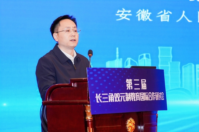 20231124日,由安徽省教育廳、江蘇省教育廳、浙江省教育廳、上海市教育委員會共同主辦、合肥學院牽頭承辦的第三屆長三角雙元制教育國際合作研討會在合肥召開。會議的主題是學習二十大報告實施科教興國戰略,貫徹習近平總書記考察安徽重要講話精神,推動教育國際合作交流和長三角教育一體化高質量發展,推進教育鏈、人才鏈、產業鏈、創新鏈有機融合,服務現代化美好安徽建設和長三角一體化發展戰略。長三角三省一市81所應用型本科院校、高等職業院校、中等職業學校、企業以及滬蘇浙皖教育主管部門負責人共180多名代表參加會議。