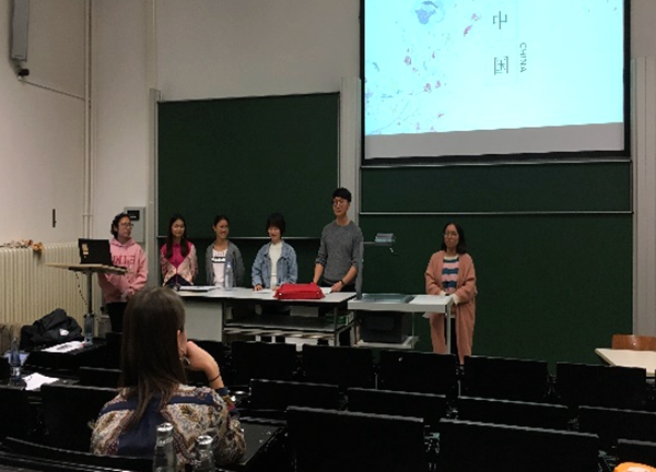 課堂學習之外,德方還在學校內舉行了一次大型的報告,讓來自各個國家的學生介紹自己的國家。我校五位同學同一位在美國大學留學的中國學生一起準備了這次關于中國的報告,向大家展示了中國的歷史文化以及人文風情,加深了其他國家的學生對中國的了解。