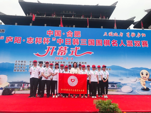 合肥第六屆中日韓三國圍棋名人混雙賽5月3日在合肥正式開戰。我校團委、青年志愿者聯合會組織45名志愿者服務此次賽事。