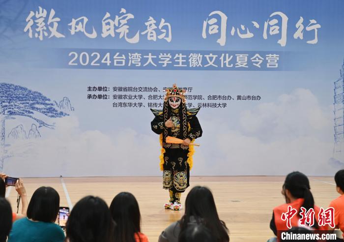 7月5日,在合肥大學(xué)南艷湖校區(qū),青年戲曲演員為臺(tái)灣高校師生表演“變臉”絕活。當(dāng)日,2024年皖臺(tái)青年交流活動(dòng)啟動(dòng)儀式暨臺(tái)灣大學(xué)生徽文化夏令營開營式在合肥舉行,來自臺(tái)灣的70余名青年師生走進(jìn)合肥大學(xué),體驗(yàn)傳統(tǒng)文化。