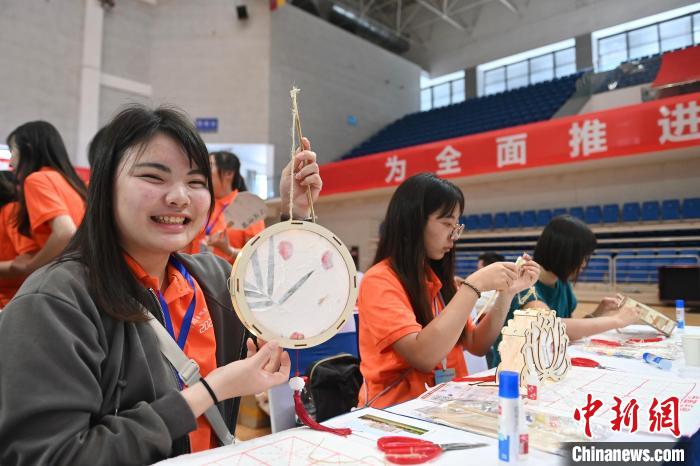 7月5日,在合肥大學(xué)南艷湖校區(qū),臺(tái)灣學(xué)生展示在自制的燈籠。當(dāng)日,2024年皖臺(tái)青年交流活動(dòng)啟動(dòng)儀式暨臺(tái)灣大學(xué)生徽文化夏令營開營式在合肥舉行,來自臺(tái)灣的70余名青年師生走進(jìn)合肥大學(xué),體驗(yàn)傳統(tǒng)文化。
