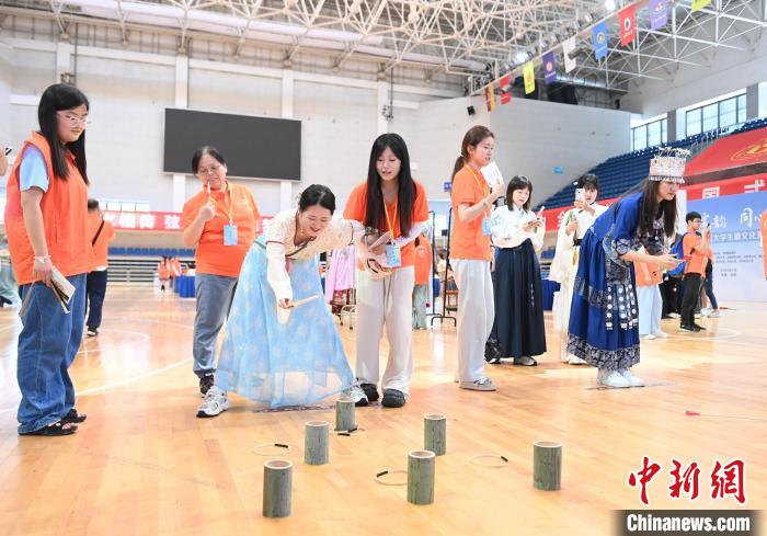 7月5日,在合肥大學(xué)南艷湖校區(qū),臺(tái)灣學(xué)生在玩套圈游戲。當(dāng)日,2024年皖臺(tái)青年交流活動(dòng)啟動(dòng)儀式暨臺(tái)灣大學(xué)生徽文化夏令營開營式在合肥舉行,來自臺(tái)灣的70余名青年師生走進(jìn)合肥大學(xué),體驗(yàn)傳統(tǒng)文化。
