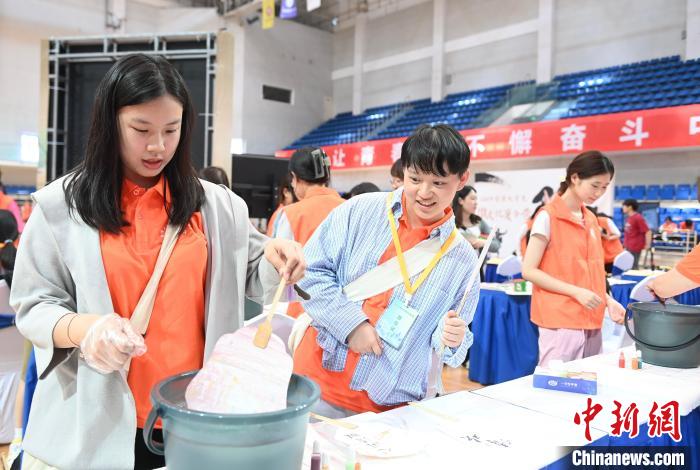 7月5日,在合肥大學(xué)南艷湖校區(qū),臺(tái)灣學(xué)生在制作漆扇。當(dāng)日,2024年皖臺(tái)青年交流活動(dòng)啟動(dòng)儀式暨臺(tái)灣大學(xué)生徽文化夏令營開營式在合肥舉行,來自臺(tái)灣的70余名青年師生走進(jìn)合肥大學(xué),體驗(yàn)傳統(tǒng)文化。