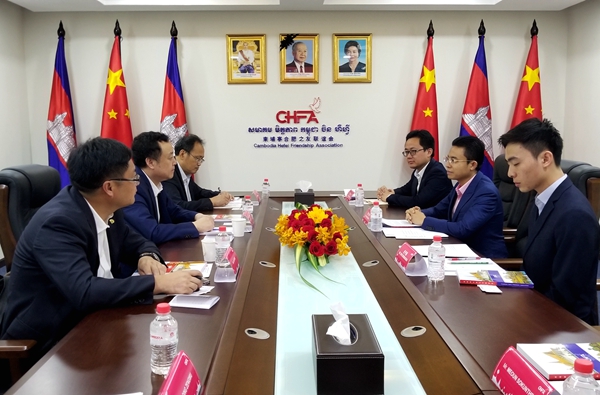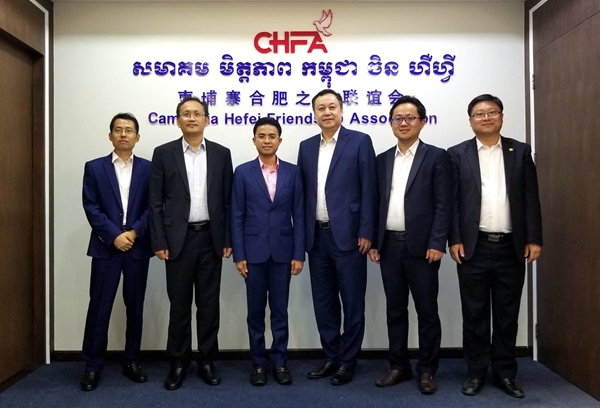 6月30日,蔡敬民一行訪問了柬埔寨安徽商會,與商會會長劉忍、秘書長葉爭飛等進行了坐談。蔡敬民向劉忍等介紹了去年由安徽商會資助的53名柬埔寨留學生在合肥學院的學習生活情況,對安徽商會在推動中柬人文教育交流方面的貢獻表示欽佩,雙方就2018年安徽商會進一步資助第二批柬埔寨留學生來合肥學院學習達成共識,并就具體實施方案過行了商定。