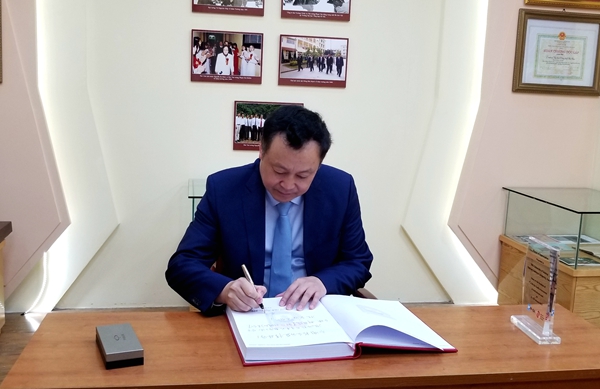 此后,蔡敬民一行又馬不停蹄接著訪問了河內人文與社會科學大學,與該校副校長黃英俊等進行了會談。雙方在介紹了對外教育交流狀況之后,在語言文化交流、旅游管理、基礎教育等方面形成了具體合作意向,約定簽署合作框架協議,對師生交流、共同感興趣的文化交流項目進行具體設計規劃。蔡敬民現場邀請該校中國研究中心副主任陶氏心慶等參加今年8月份由我校安徽省朱子研究會承辦的2018兩岸四地朱子學術交流研討會,對方愉快接受了邀請。