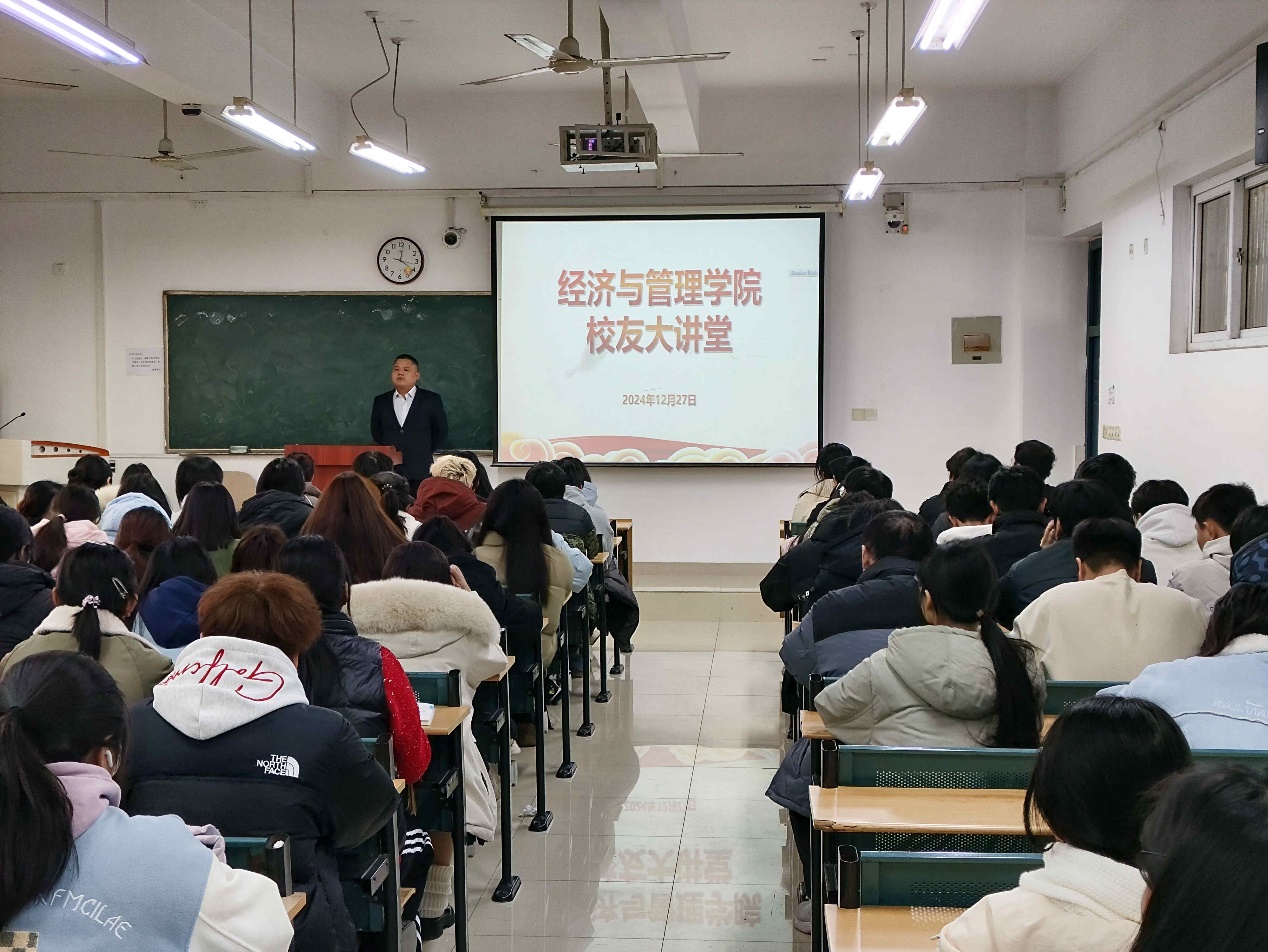 12月27日下午,《經管學院校友大講堂》系列講座在一期教學樓4棟301教室順利舉行。本次活動邀請了經管學院2013級國際經濟與貿易專業(yè)優(yōu)秀校友代表,現(xiàn)任中國銀行合肥包河支行公司客戶經理的王則清主講。我院各年級、各專業(yè)本科生及研究生參加學習。
