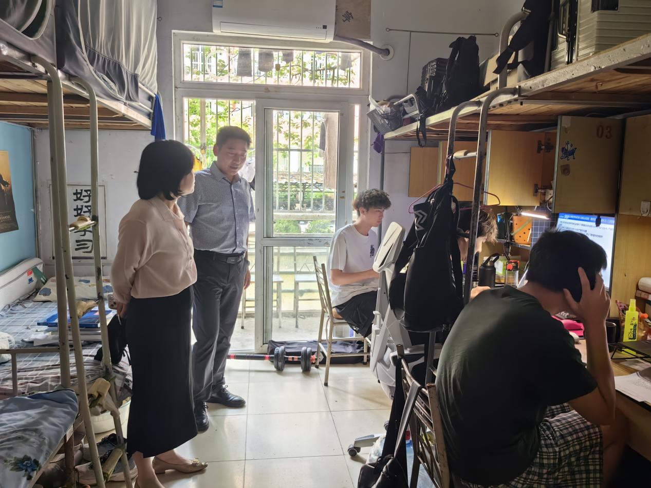 為督促學生養(yǎng)成良好的衛(wèi)生習慣,鞏固經(jīng)管學院宿舍安全衛(wèi)生“百日行動”實施成效,5月26日下午,院黨委副書記夏丹青陪同學生處副處長陶龍澤前往香怡社區(qū),檢查香怡4棟經(jīng)管男生宿舍衛(wèi)生情況。