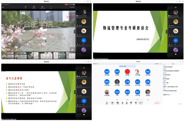2020年627日晚上,經濟與管理學院16級物流管理專業的優秀考研生利用騰訊會議平臺,通過語音交流、屏幕分享方式,開展考研經驗分享交流會,經濟與管理學院物流管理專業有意向考研學子參與會議。此次交流會由2016級物流管理專業黃先寶主講