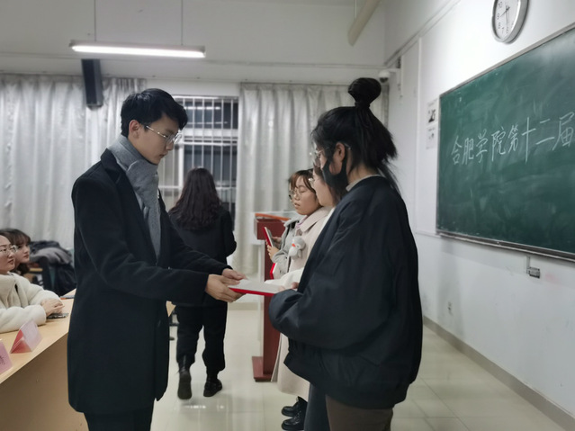 2020年11月28日,合肥學院第十六屆校園文化藝術節之自薦書大賽頒獎儀式于我校一區博學樓B座303教室順利舉。出席頒獎儀式的嘉賓經濟與管理學院第二屆學生會主席團全體成員及比賽獲獎者們,儀式權益部部長羅一主持。