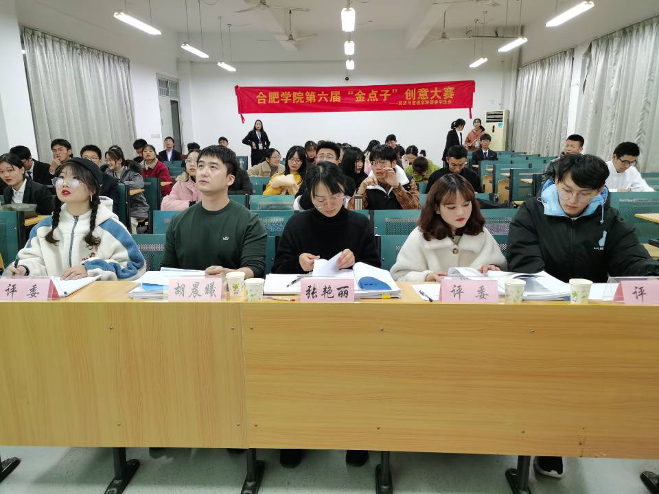 2020年12月4日,合肥學院第六屆“金點子”創意大賽決賽在我校一區博學樓C座307教室順利舉行。參加決賽的是晉級的十二個團隊,此次決賽由經濟與管理學院胡晨曦老師、張艷麗老師及學生會主席武佳慶、王紫晴,團副李敏擔任評委。經濟與管理學院學生會科創部委員張芝偉主持此次決賽。
