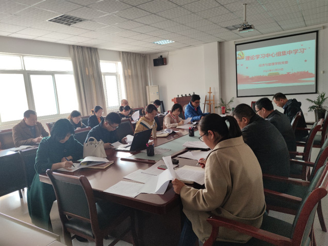 2021年11月16日,經濟與管理學院黨委理論學習中心組集中學習議于我校一期博學樓B座二樓會議室進行。會議由經濟與管理學院黨委書記楊學春主持,黨委副書記、副院長宋玉軍,副院長吳悅,黨委副書記張永軍、黨委委員以及我院各黨支部書記參加了學習討論。