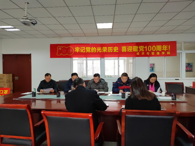 2022年1月10日下午,經濟與管理學院黨史學習教育專題民主生活會于我校一期博學樓B座二樓會議室召開。會議由經濟與管理學院黨委書記楊學春主持,經濟與管理學院全體黨委委員參加,經濟與管理學院院長陳江華列席。校黨委委員、組織部部長白義香到會指導。