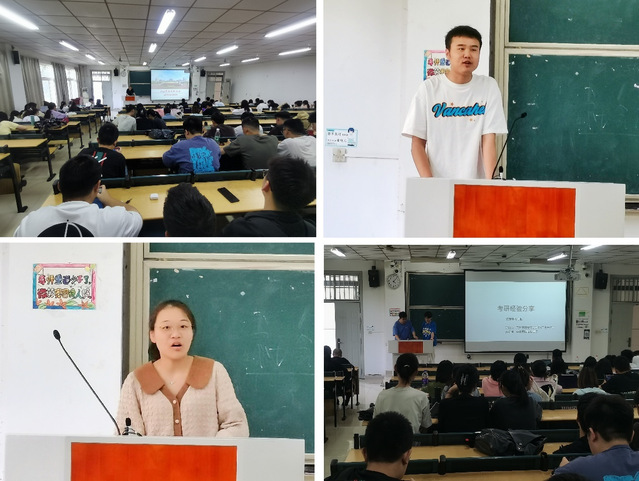 交流會中,丁世杰、石瀟潔、張博聞分別為同學們講解了在備考期間應注意的問題,包括考研各科的復習方法、考研信心的樹立、考研計劃、備考心態(tài)的調整、作息時間安排,以及有關選擇專業(yè)方向的一些心得。劉穎建議在學習過程中應當注重對知識點的歸納,建立起系統(tǒng)的框架,并分享了她在備考過程中遇到的問題及解決辦法,幫助備考公務員的同學解決了疑惑。