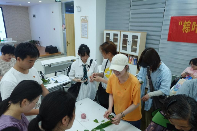 后,學生黨員們前往服務中心參觀了協商議事廳、圖書閱覽室、老年活動室黨建動態展區等地恰逢社區舉辦“粽葉飄香迎端午,溫情義診進社區”活動,學生黨員們熱情參與其中,并在活動結束后幫助工作人員打掃場得到了社區居民們的一致好評。