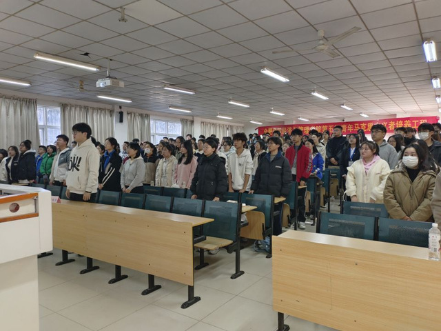 首先,全體成員起立奏唱團歌。隨后,張培洋同學為學員們講授青馬班第三講——新時代中國青年的使命擔當。張培洋同學強調,中國特色社會主義新時代,是中國青年成長成才、建功立業的最好時代,作為學生,我們應該用實際行動踐行著“請黨放心、強國有我”的青春誓言。張培洋同學還指出要堅持黨的領導,樹牢“四個意識”、堅定四個自信”、堅決做到“兩個維護”,為推進中國式現代化貢獻青春的智慧和力量。