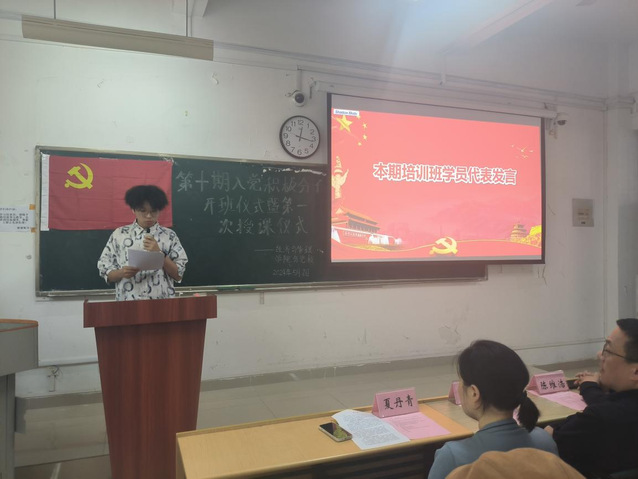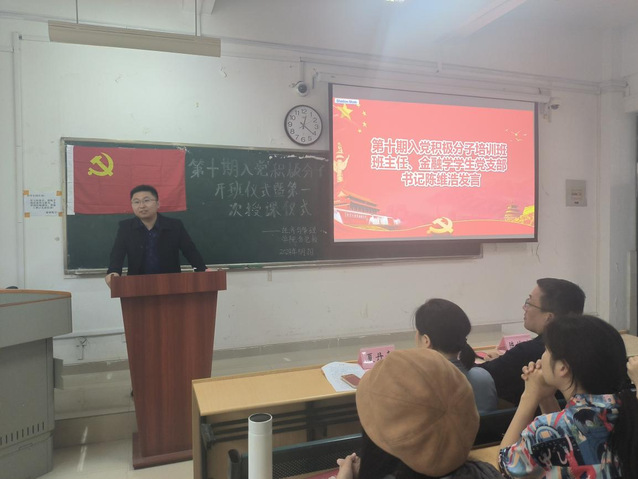 開班典禮上,第十期入黨積極分子學生代表23級財務管理三班李琦同學,分享了自己對中國共產黨的深刻認識并承諾在黨課學習中嚴于律己、努力學習。隨后,支部書記陳維浩對本期培訓班學員提出紀律要求,鼓勵學員認真學習領會黨課知識內涵,并在日常學習、生活等方面爭當先鋒模范。最后,夏丹青副書記作動員講話,她希望同學們珍惜本次黨課學習機會,端正入黨動機,樹立為共產主義事業奮斗終生的理想信念。