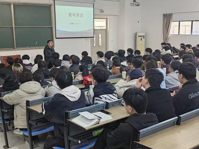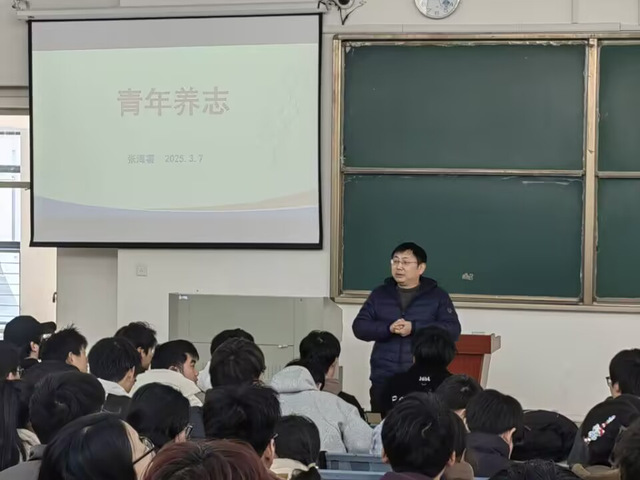 魏安樂以“青年當以志為先”開篇,結合中國傳統文化中“修身齊家治國平天下”的理念,深入剖析了“青年養志”的時代意義。作為海科集團創始人、總經理的09屆校友張海喜學長,從安徽農村走出,曾是大學的普通學生,卻通過錨定目標逐步實現人生跨越。大學期間,他擔任學生會主席、英語俱樂部會長,帶領團隊將零散的社團整合為統一平臺,并斬獲全國英語競賽大獎;畢業后創立粉體行業標桿企業海科集團,推動產學研深度融合,打造校企合作典范。學長以親身經歷詮釋:“志向不是空中樓閣,而是每日腳踏實地的堅持。”他引用王陽明“志不立,天下無可成之事”的名言,強調目標對人生的指引作用:“就像航海需依北斗,青春的航船若失去志向的羅盤,終將迷失在時代的浪潮中。”