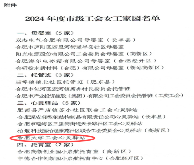 我院女工家園“心靈驛站”榮獲“2024年合肥市工會示范女工家園”稱號