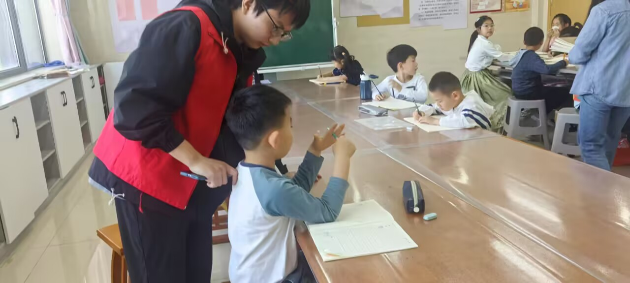 課堂上,志愿者們協(xié)助老師維持秩序,確保每位小朋友都能在一個安靜和諧的環(huán)境中學習。他們幫助老師分發(fā)教材,削鉛筆,以及在需要時提供各種幫助,確保教學活動順利進行?;顒拥奈猜?,志愿者們確保每位小朋友都被家長安全接走。在孩子們離開后,志愿者們沒有立即離開,而是將教室打掃得干干凈凈,確保環(huán)境整潔。
